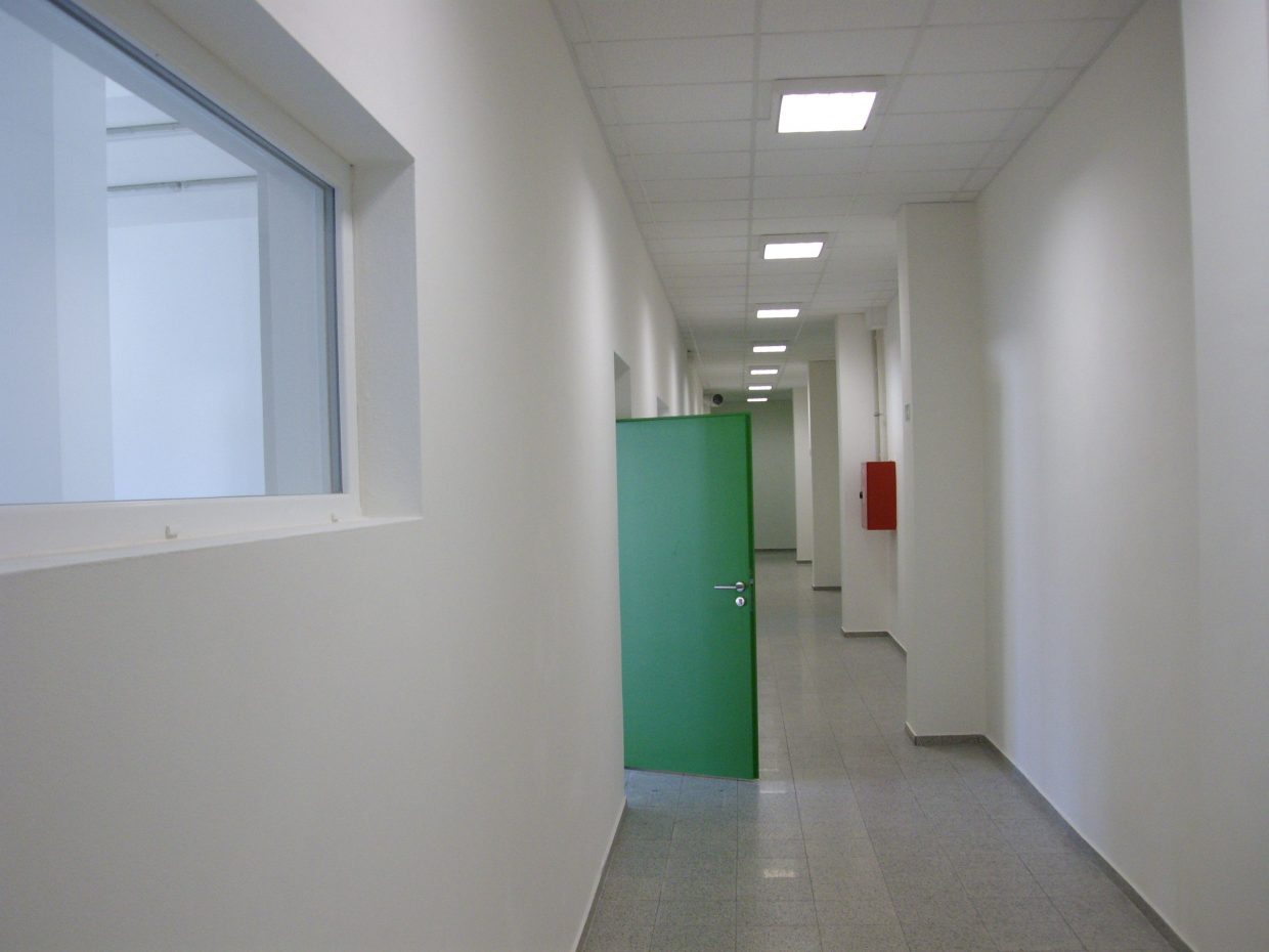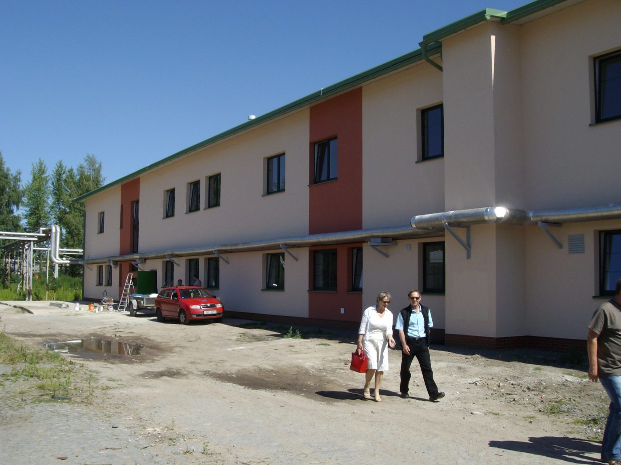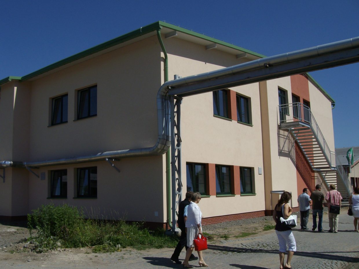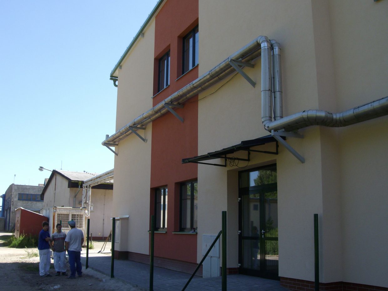 Nový objekt je dvoupodlažní a zateplený, s novými plastovými okny, novými zateplenými vraty a s únikovým ocelovým schodištěm na jihovýchodní straně.