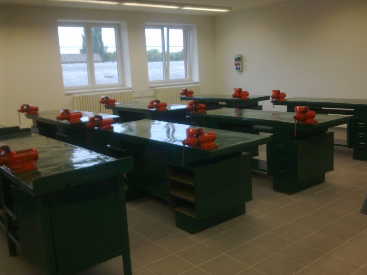 Stavba je řešena jako rekonstrukce stávajícího objektu jednolodní haly se zděným přístavkem. Byl vytvořen jednotný celek s odbornými učebnami, dílnami a zázemím se sousední budovou.