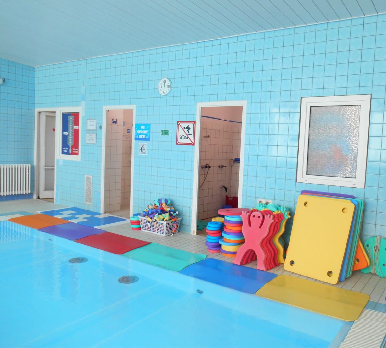 rekonstrukce stávajícího dětského bazénu a úprava přilehlého sociálního zázemí – prohloubení a rozšíření dětského bazénu, výškové sjednocení podlah, spádovaný ochoz kolem dětského bazénu, nová místnost pro skladování a čištění pomůcek, místnost parních lázní s kapacitou 5 osob, protiskluzové nášlapné plochy