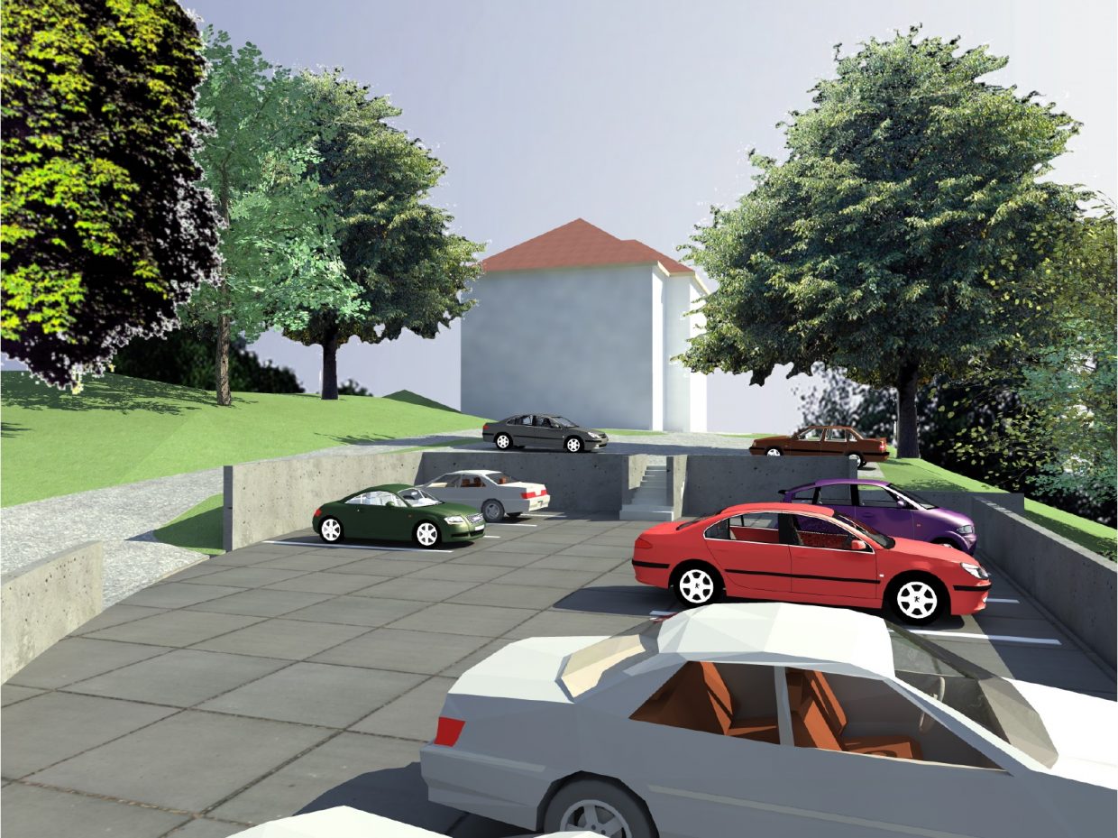 prostory pro školení a přednáškovou činnost, drobné vodní plochy, pěší komunikace, cyklostezky, parkovací plochy