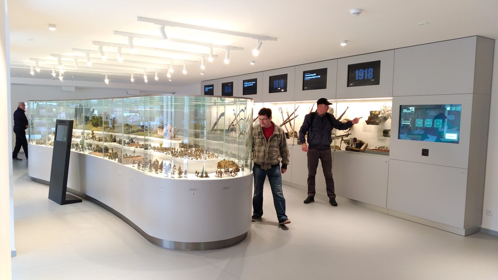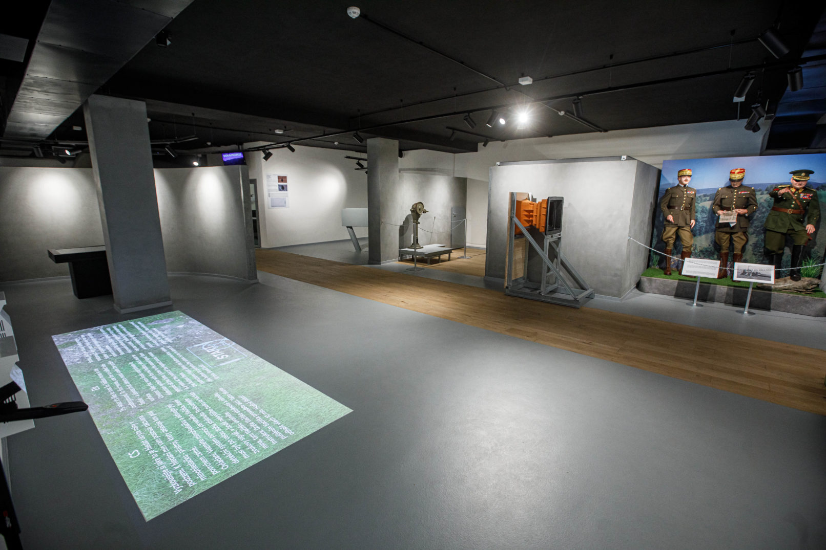 vybavení audiovizuální technikou, interaktivní panely, prezentace vojáčků, model krajiny s bunkry, vizualizace modelu pevnosti, vojenská ubikace – oblékání uniforem
