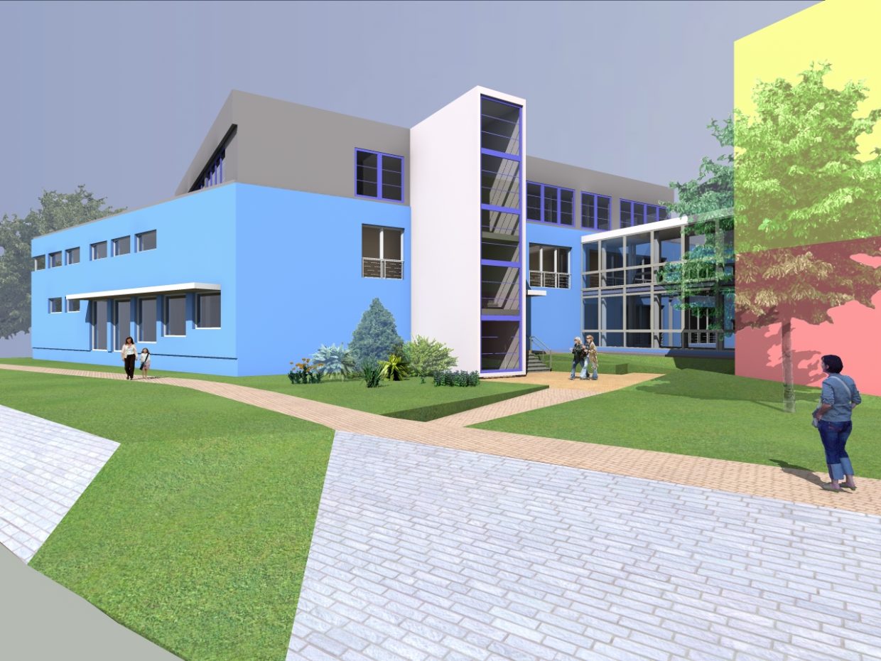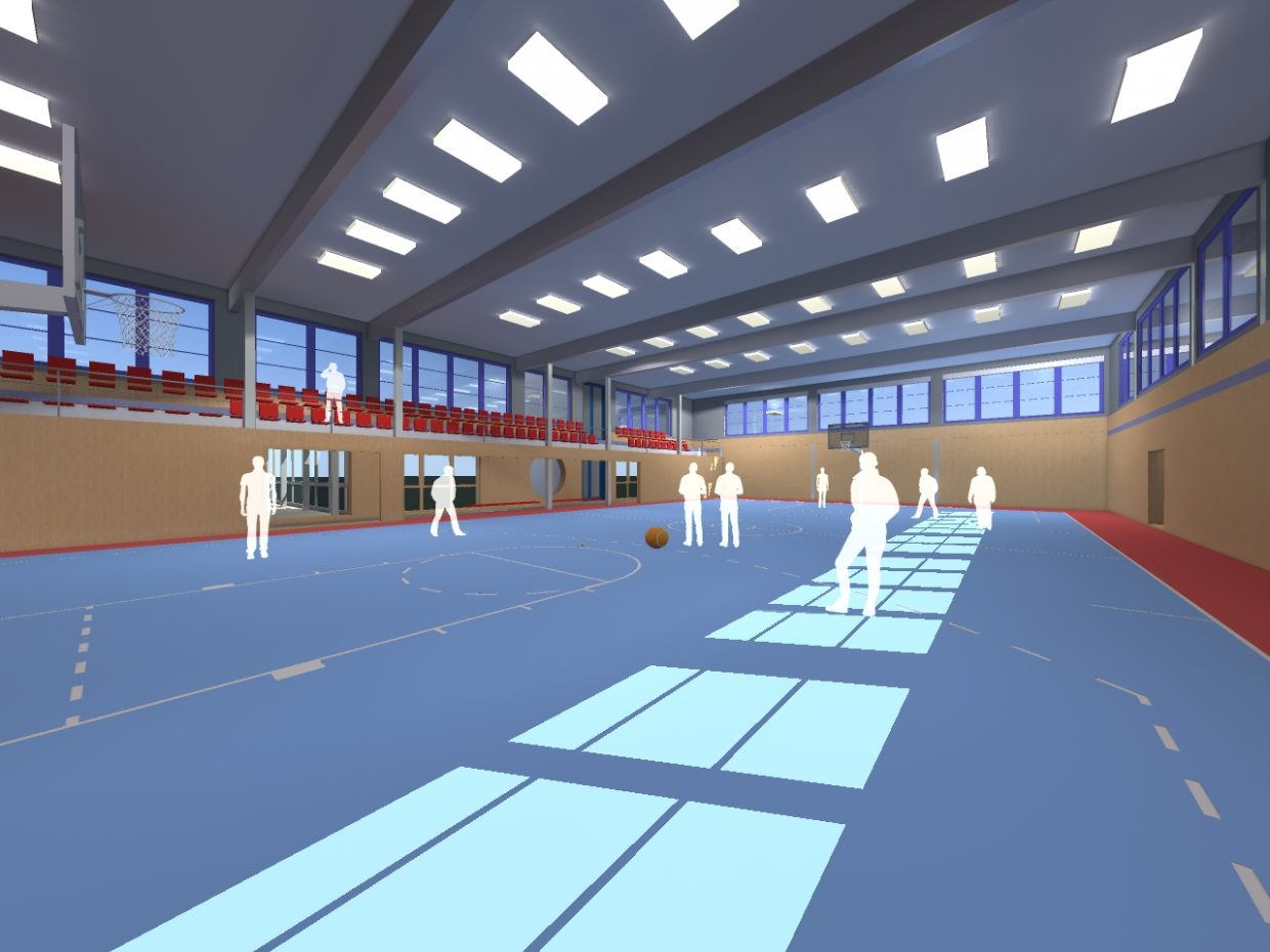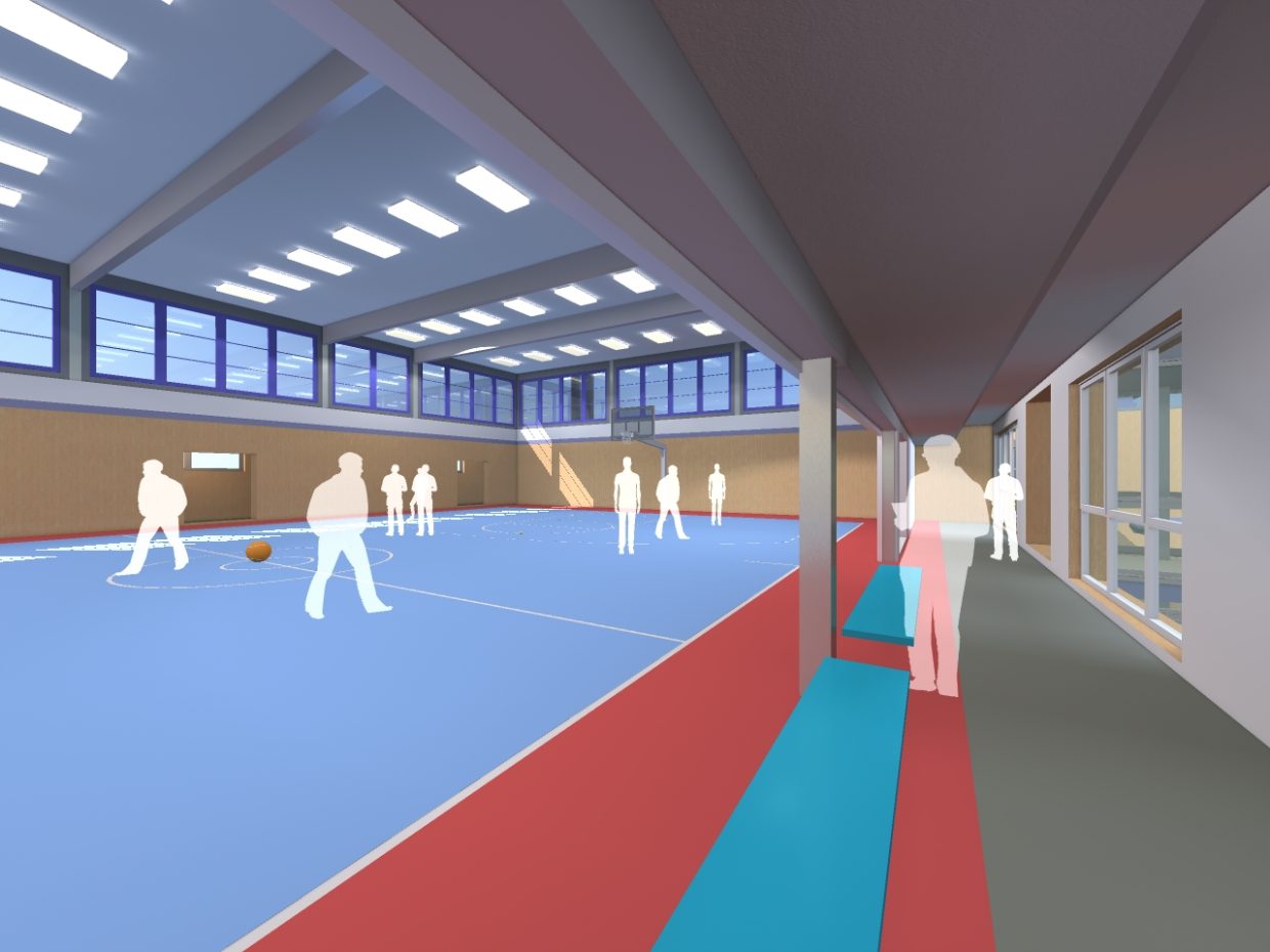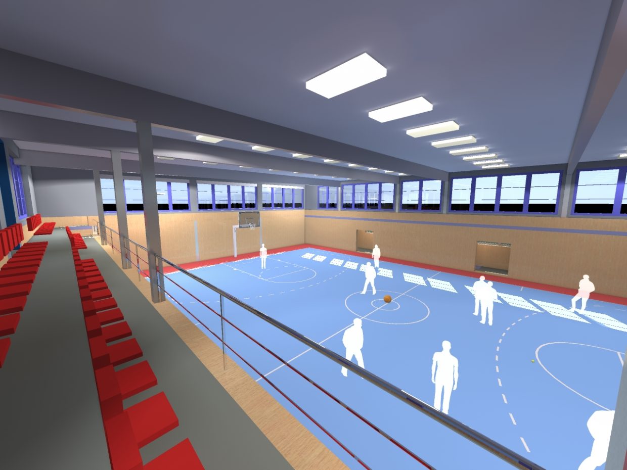 vybudování školní tělocvičny pro výuku tělesné výchovy a pro činnost sportovních spolků v odpoledních hodinách, nářaďovna, 2 šatny, sprchy a wc, audio ozvučení, světelné ukazatele skóre, kabinet