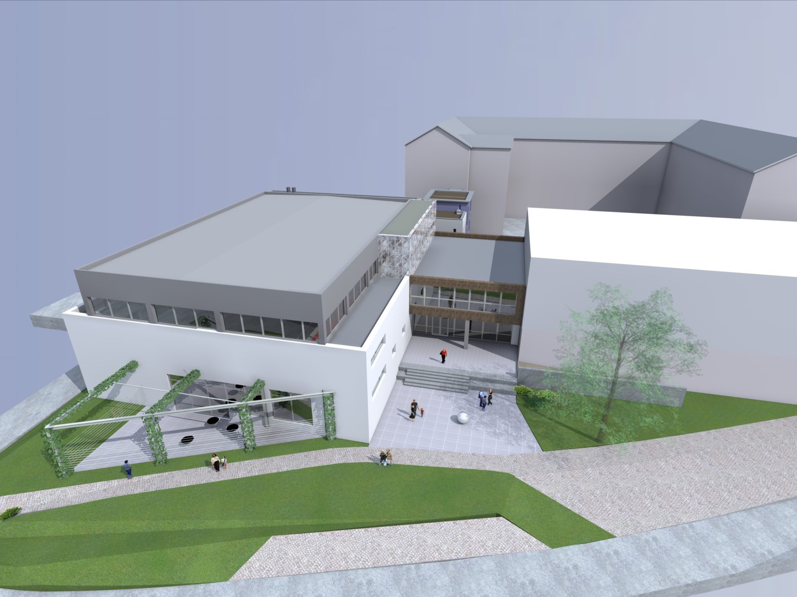 vybudování víceúčelové místnosti (auly) s kapacitou min. 100 osob, mobilní pódium, samoobslužná šatna
